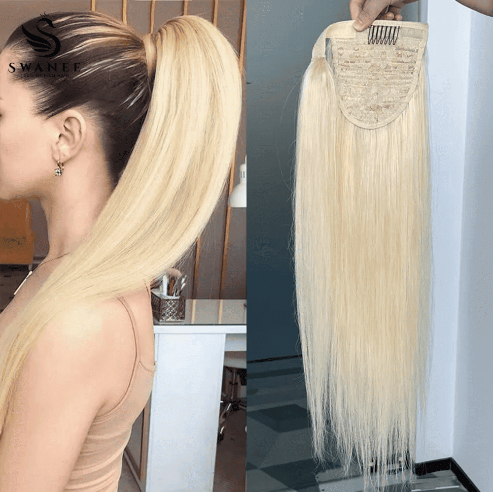 Healthy Hair Material:Crafted from 100% real human hair, our full-shine wrap-around ponytail extensions are smooth, straight, and tangle-free. They can be treated and styled just like your natural hair, making them versatile for different hair lengths. Whether your hair is thin or thick, these extensions clip in securely and blend seamlessly with your own locks, remaining virtually undetectable. Your secret is safe with us!
